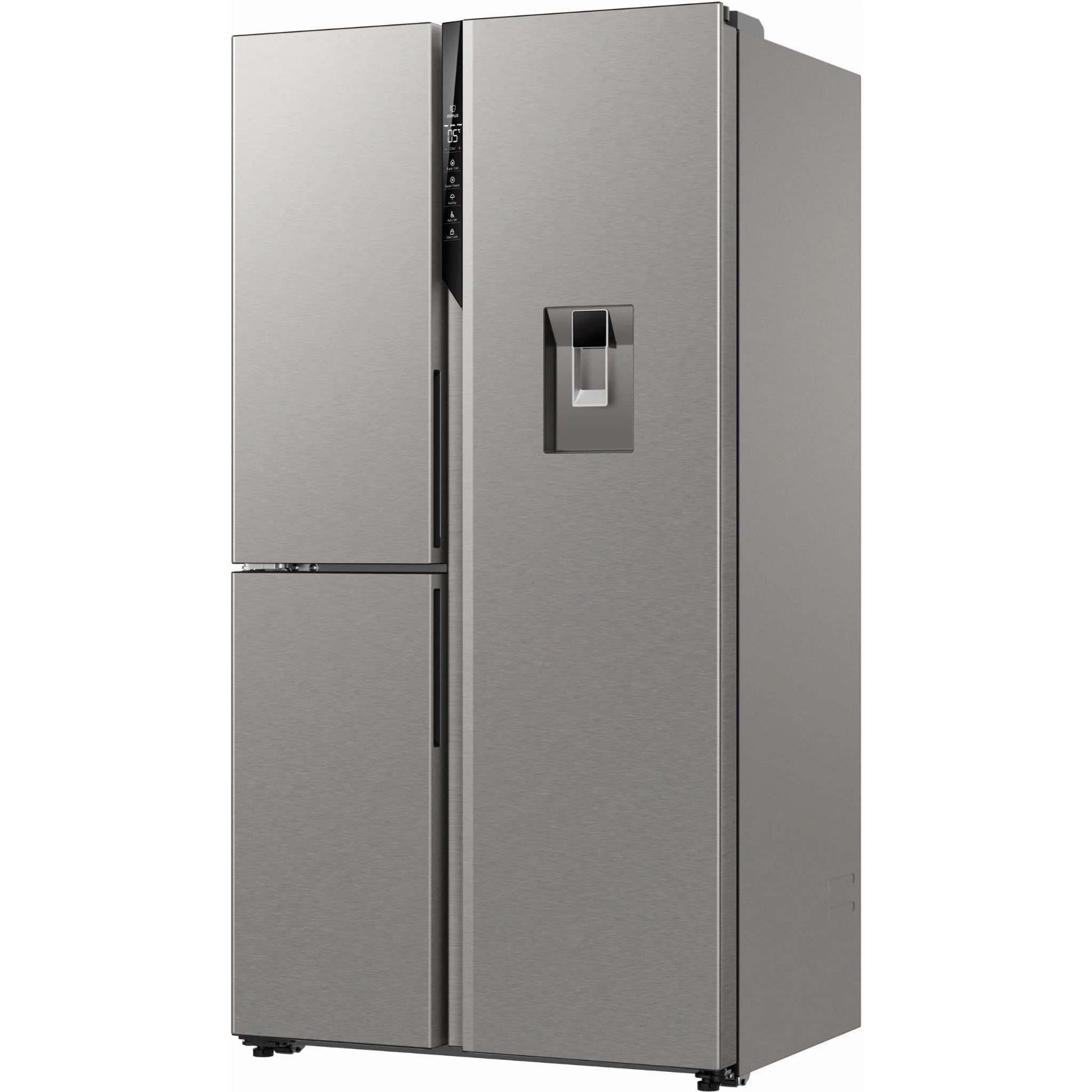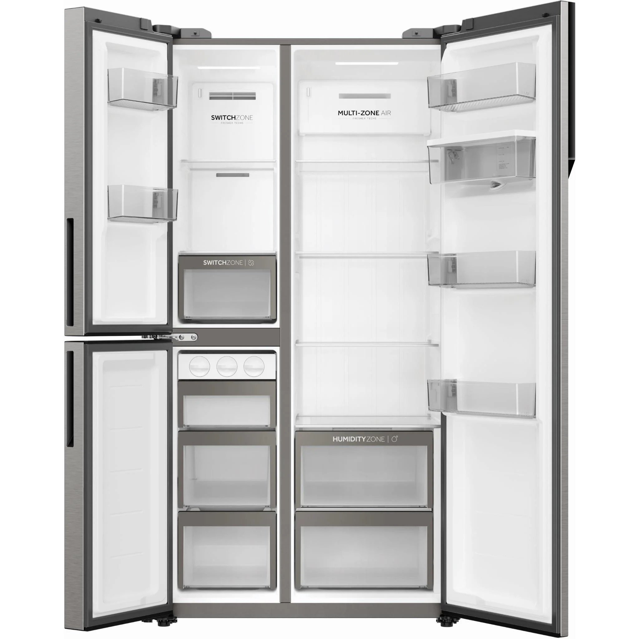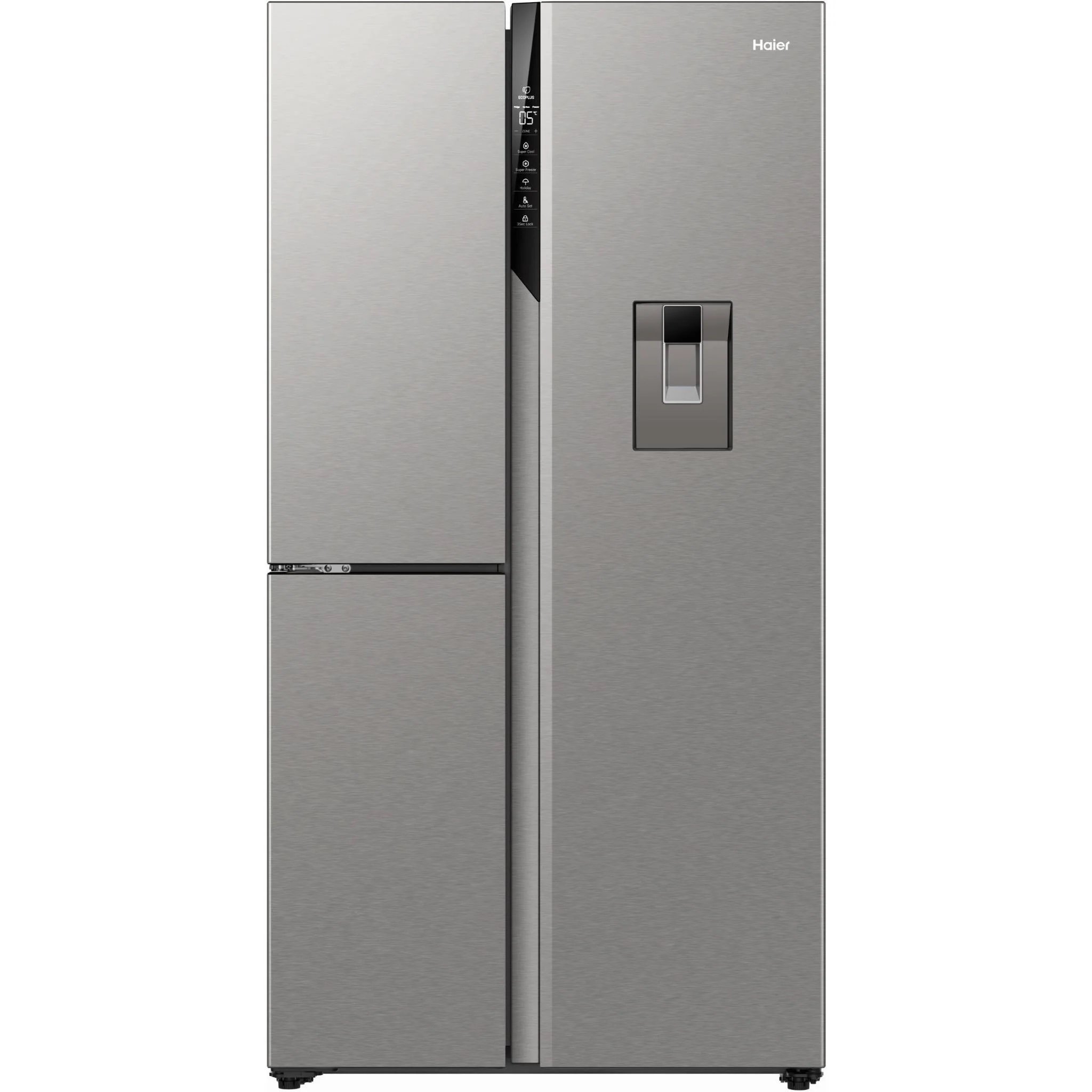 The Haier 574 litre S+ Three Door Side by Side Fridge in stainless steel with non-plumbed water dispenser is a versatile and efficient addition to any kitchen.