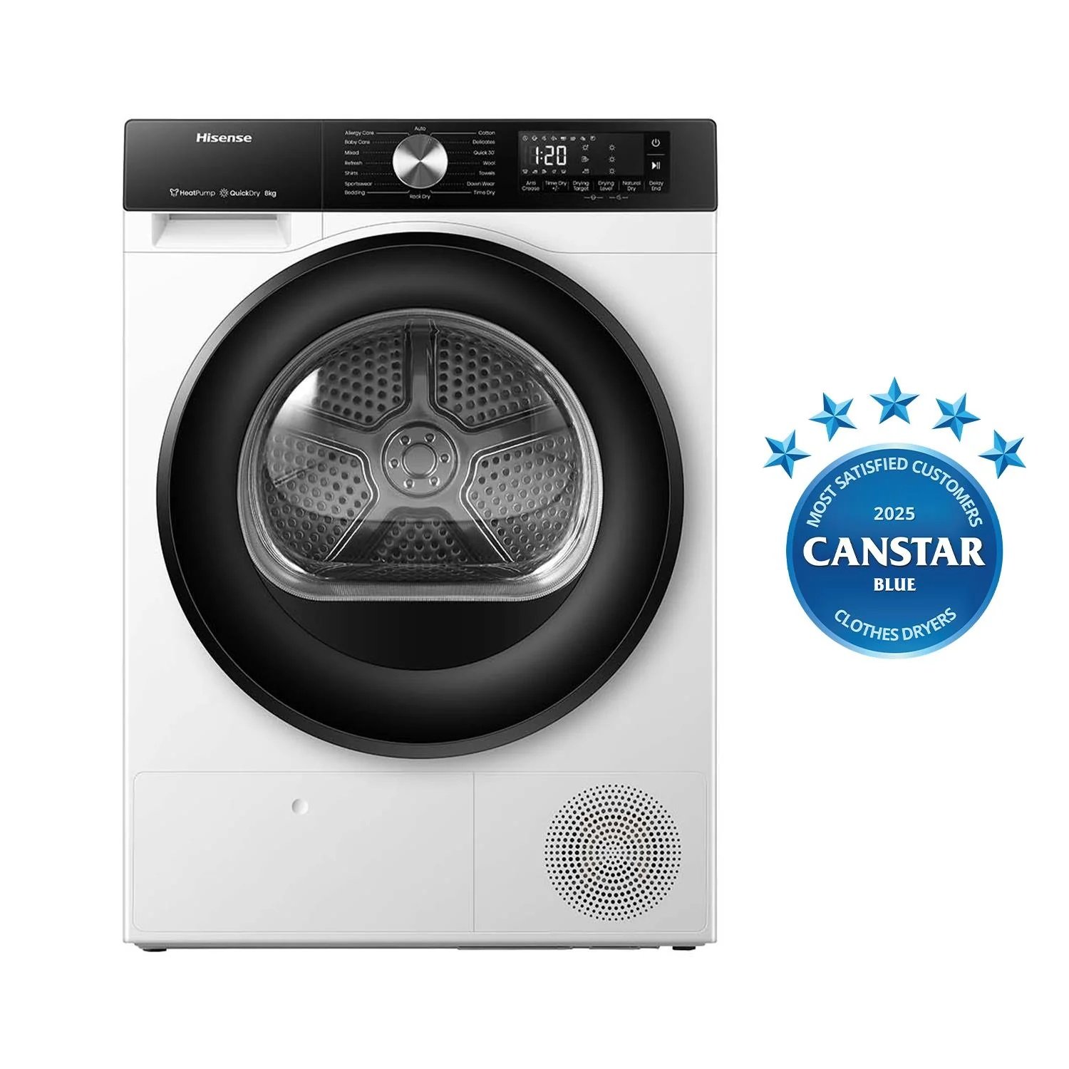 Hisense’s Heat pump technology ensures lower drying temperatures and provides a gentler dry while providing high quality drying. It’s also the most efficient drying technology available, minimising energy consumption without compromising on performance.
