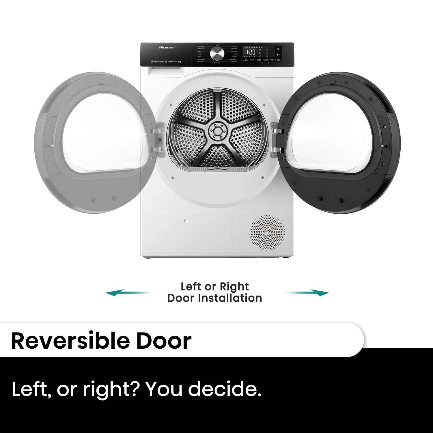 Whether you want to stack your Dryer on top of your compatible Hisense Washer, or place it side by side, have it your way with a reversible door to maintain not only a great aesthetic but better accessibility in all configurations.