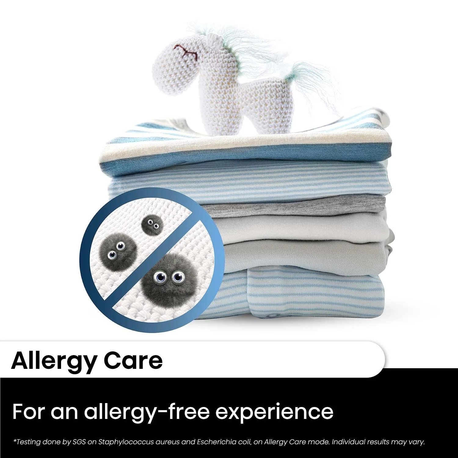 Protect your skin with the Allergy Care function which uses the power of hot air and a longer drying cycle to effectively remove allergens, thus minimising skin irritation from your clothes, making them safe and pleasant to wear.