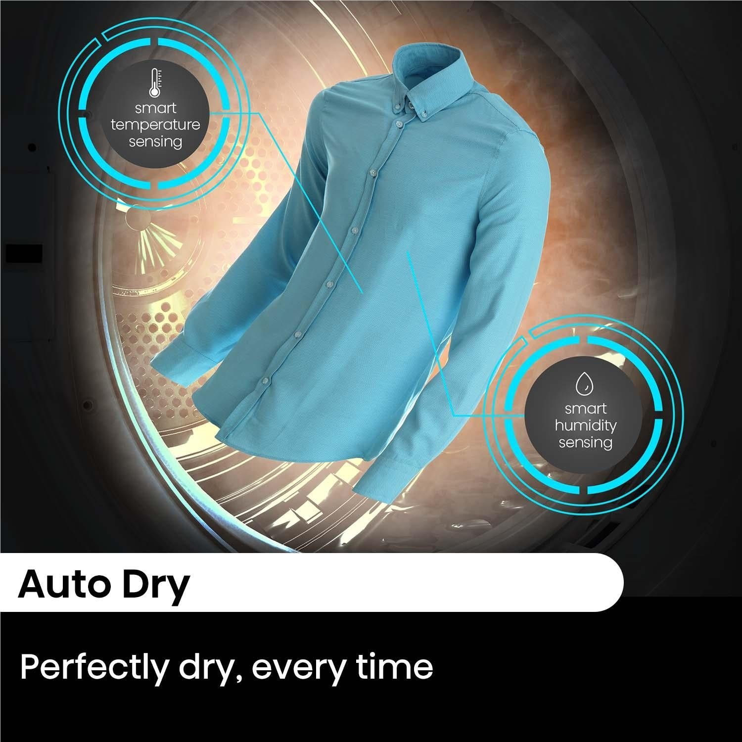 With built-in high-precision sensors that continuously monitor residual moisture and temperature, Auto Dry automatically adjusts drying times to save time and energy while being gentle on your clothes.