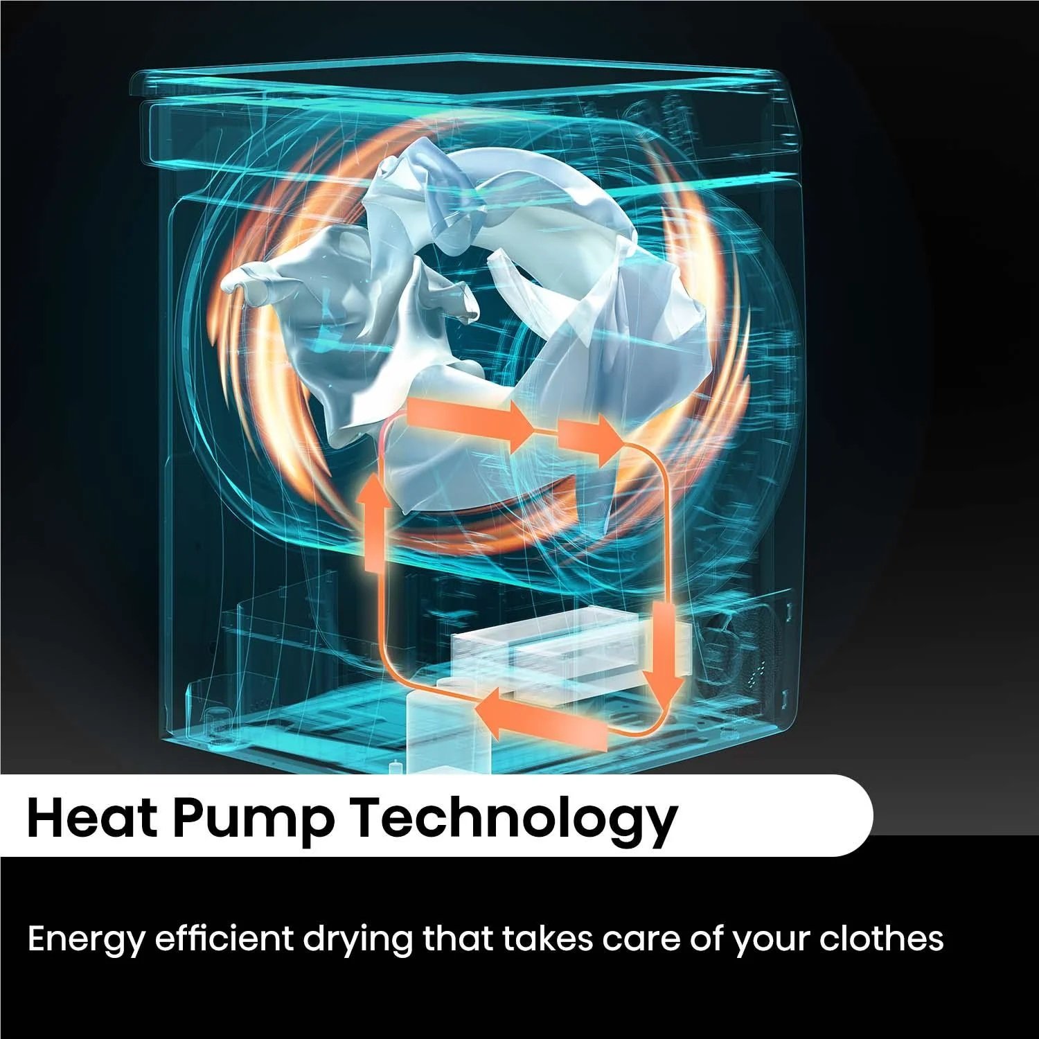Hisense’s Heat Pump technology utilises lower drying temperatures than a standard vented dryer, protecting clothes from damage while providing high quality drying and saving energy.