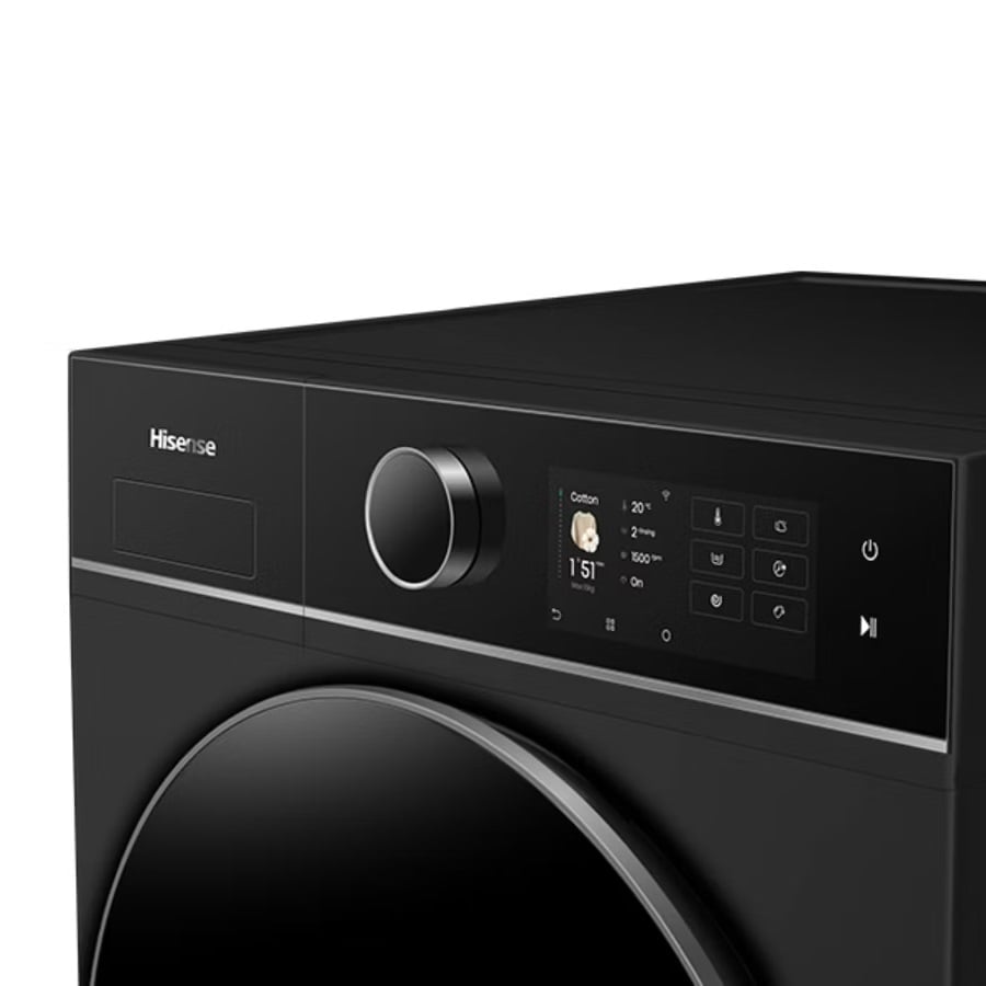The Hisense Series 8i 10kg TFT Front Load Washer combines premium design, intelligent technology, and advanced fabric care to deliver a superior laundry experience. Finished in striking charcoal black with a sleek glass door, it brings a modern statement to contemporary laundry spaces while offering powerful 1500rpm spin performance for efficient water extraction and reduced drying time.
