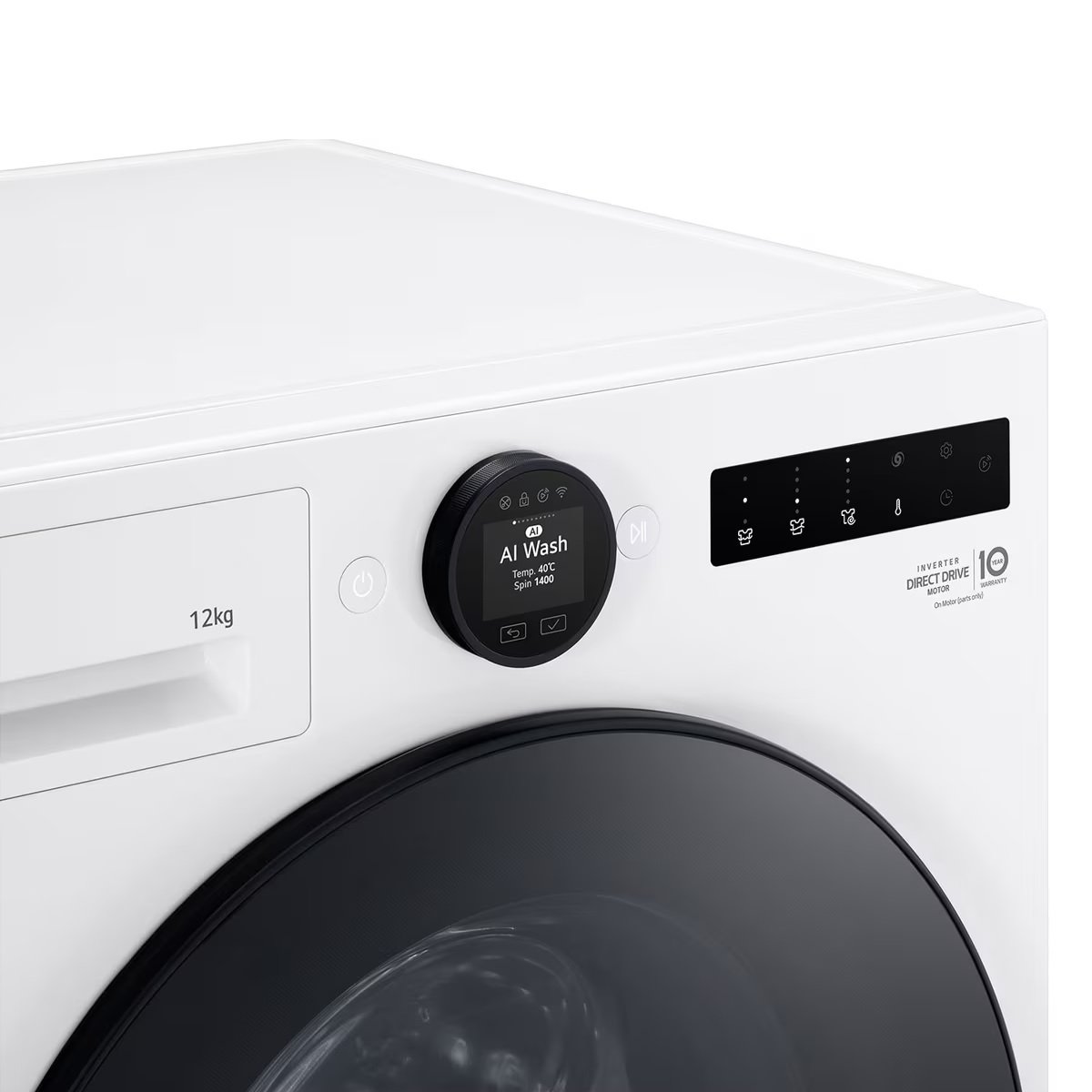 The LG WX9‑1412W centres on intelligent fabric care, fast washing performance, and hygiene-focused features. It combines AI-driven wash optimisation with steam cleaning, microplastic reduction, and smart connectivity. AI Wash with AI DD® adjusts drum motions based on fabric type and load weight to improve cleaning while protecting garments.
