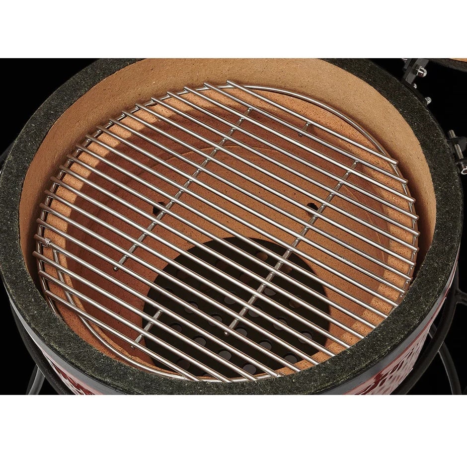 The stainless steel hinged cooking grate allows you to add charcoal as you cook.