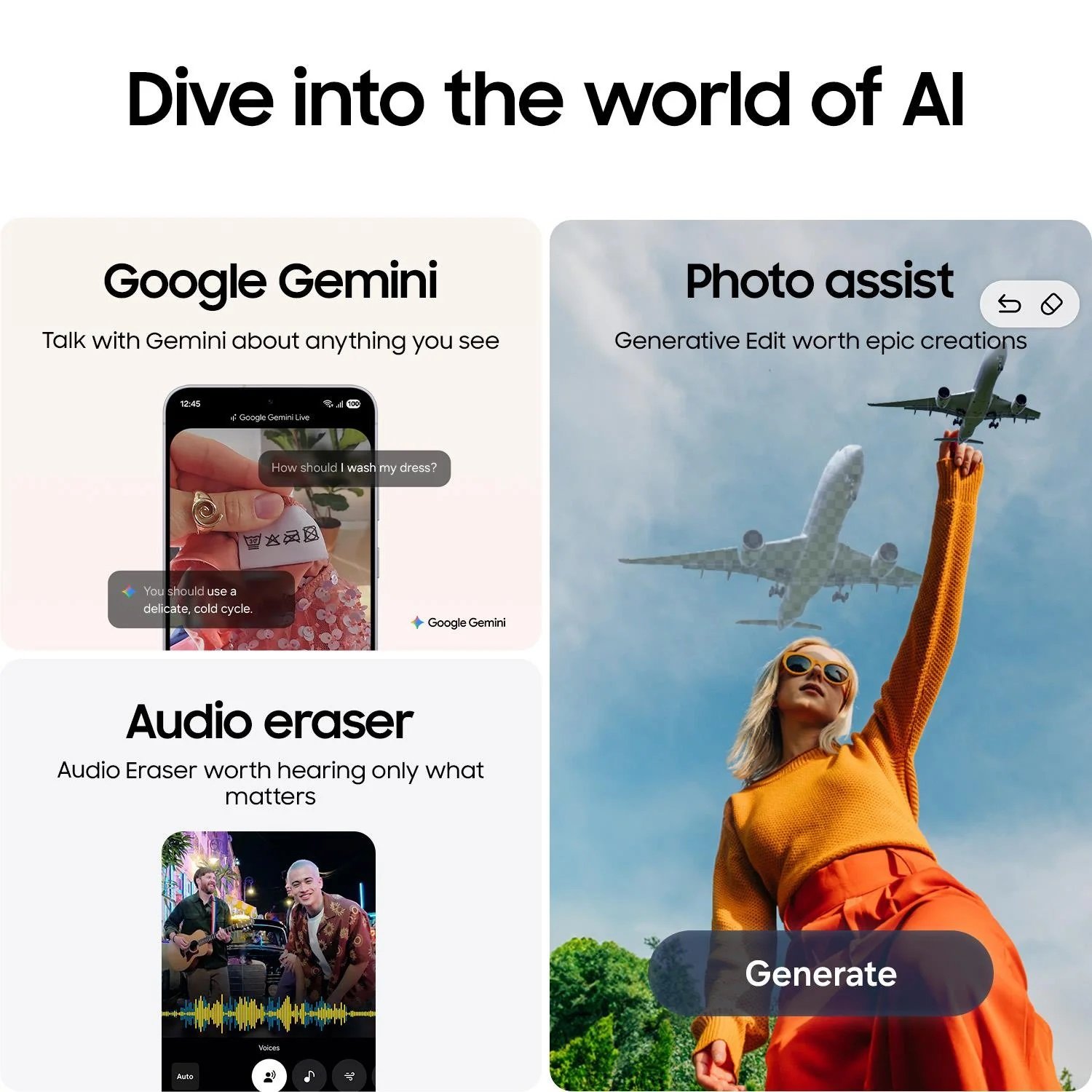 4 Gemini is a trademark of Google LLC. Gemini Live feature requires internet connection and Google Account login. Compatible with certain features and certain accounts. Available on select devices and select countries, languages, and to users 18+.